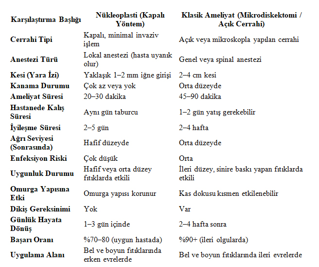 🔹 Nükleoplasti ve Klasik Ameliyat Arasındaki Fark